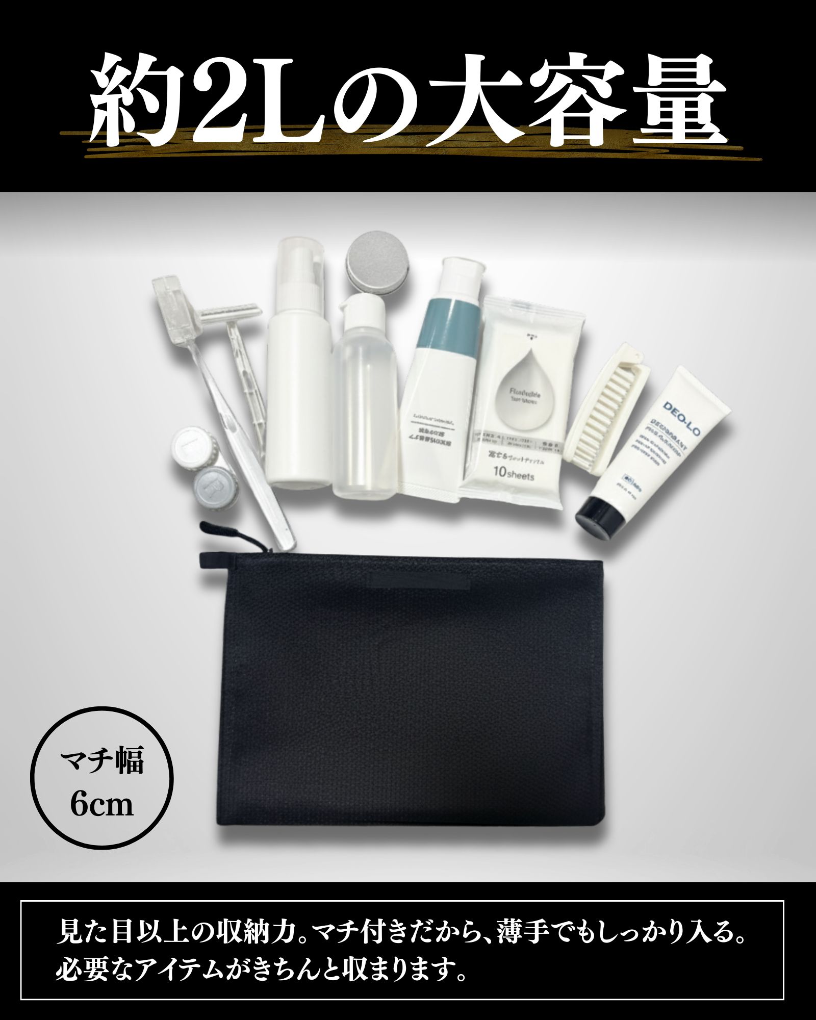 トイレタリー用品一式をまとめて収納可能。